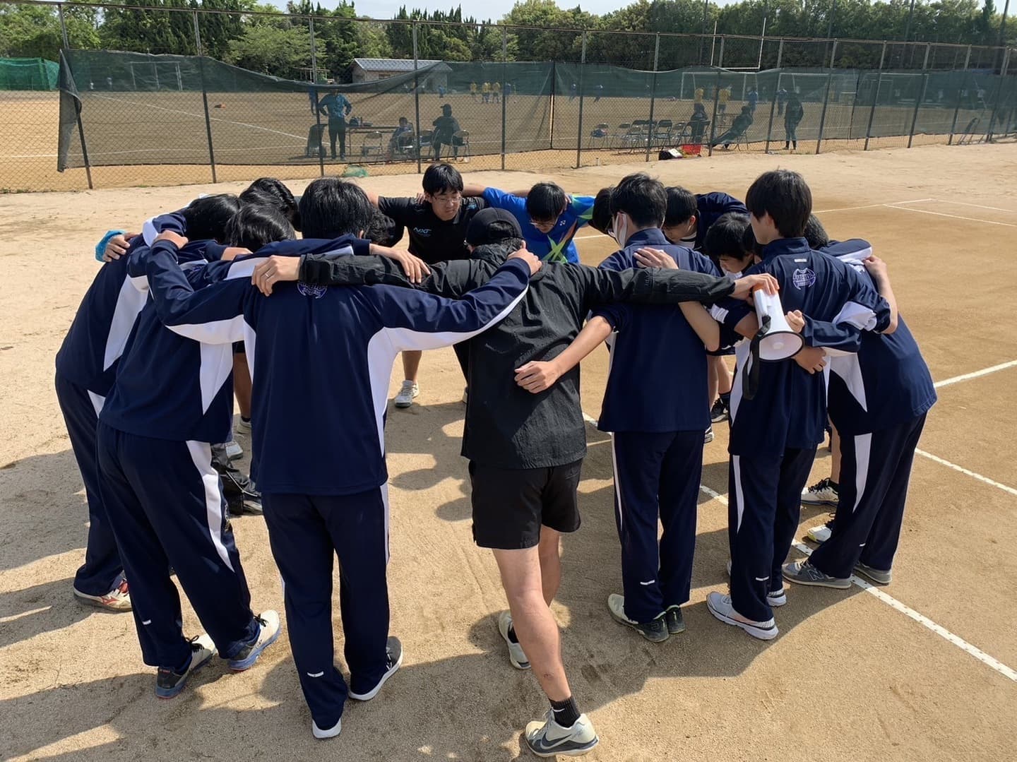 ↑2023新人戦県大会本戦出場に伴い、松陰高等学校・兵庫県立国際高等学校と赤穂海浜公園テニスコートで練習を行いました。
