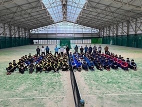 ↑相生学院高等学校主催の2024年ニューイヤー選抜高校テニス団体対抗大会(1/4~1/6)に、本校から2名、他校の選手とチームを組んで参加しました。全国大会出場校が集まるトップレベルの環境の中、技術力・精神力が向上し、この上なく貴重な経験となりました。