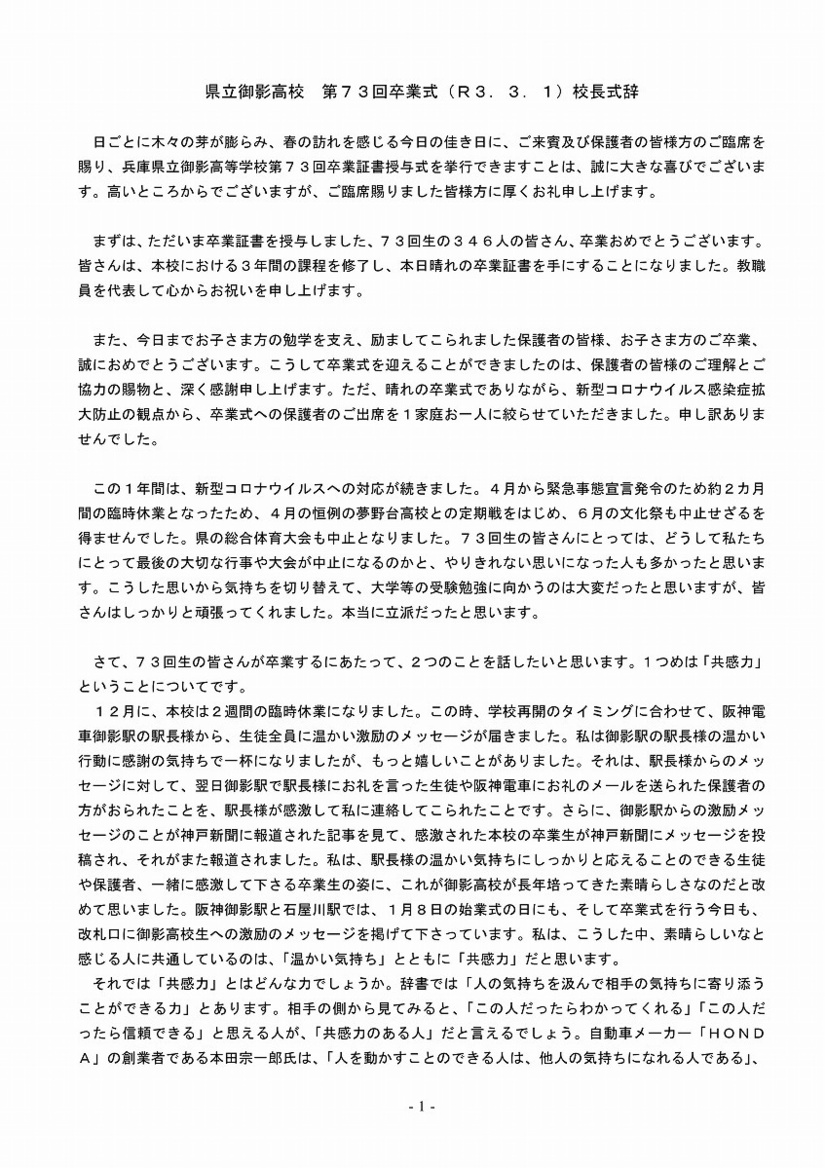 兵庫県立御影高等学校のホームページにアクセスして頂いた皆様、ありがとうございます。