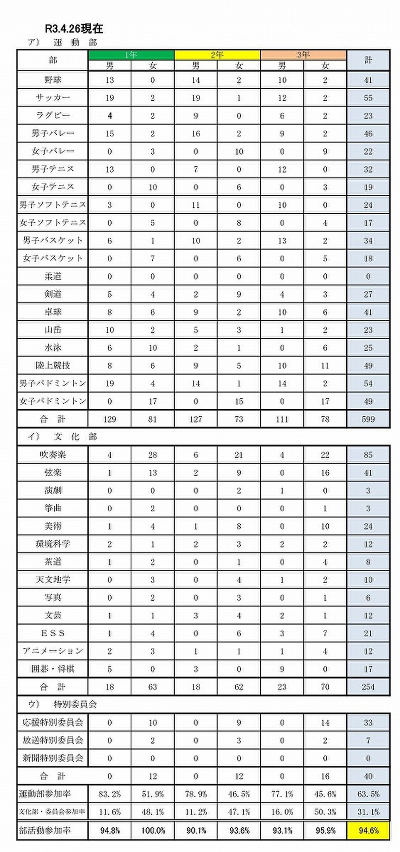 運動部、文化部ともに本校では部活動がとても盛んです。