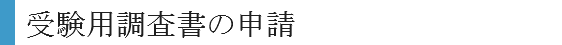 - 事務室で、①証明書交付申請書に必要事項を記入し、調査書を受け取って下さい。受け取りには、②本人確認書類(健康保険証など)と③の発行手数料(発行数×400円)が必要です。