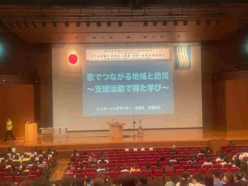 記念講演では、シンガーソングライターの石田裕之さんを講師にお迎えし、「歌でつながる地域と防災」をテーマにご講演いただきました。