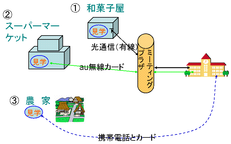 そして、教室と農家(ビニールハウスの中)とは、双方ドコモのFOMAを使いました。農家側はFOMAの携帯電話で、教室はFOMAのカードになったものをパソコンに取り付けて交信しました。光回線ほどではないけれども、映像・音声ともにほぼ良質な状態で交信できました。