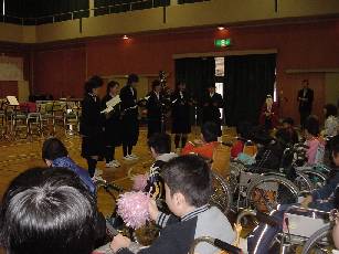 | 2005年12月19日 月曜日 夢野台高校来校 今年も夢野台高校のみなさんが、 来校してくれました。 バトン部の皆さんのそろったダンス。 コーラス部の皆さんのきれいな歌声。 ブラスバンド部の皆さんの迫力のある演奏。 とても寒い日だったけど、 みんなで楽しい時間を過ごせました。 夢野台高校の皆さん、ありがとうございました。 |