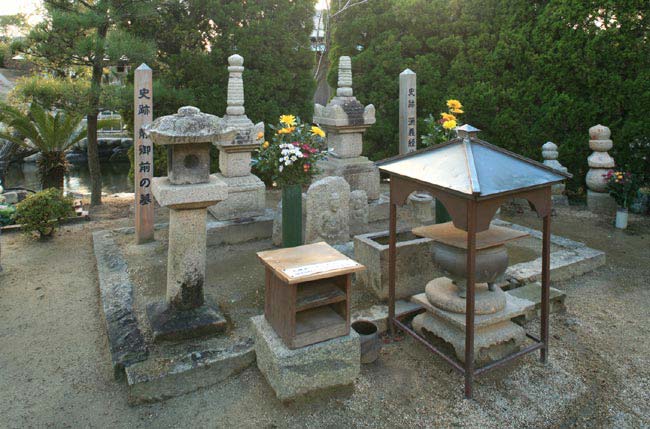 源義経との恋に生きた静御前の墓は日本各地に存在するが、この地も江戸時代から有名な場所である。2基並ぶ宝篋印塔(ほうきょういんとう)のうち、右が源義経、左が静御前の墓と言われている。静は鎌倉で義経との子を殺されたが、命を助けられ、頼朝の妹の夫、一条能保に預けられたという。一条家の荘園が志筑にあったためここに隠れ住み、1211(建暦元)年の冬に47歳で没したため、供養として宝篋印塔が建てられたと伝えられている。