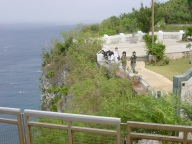 《B班》1月19日の様子 グアム大学では、キャンパスを大学生に案内してもらいながら、 様々な施設を見学しました。 大学ではクリスマスバカンスが終わり、今日から講義が始まっていました。 大学生から英語で話しかけられて、戸惑う姿も見られました。 グアム大学にて@ グアム大学にてA 南部観光に出発しました。まず最初に、ニミッツヒル戦争歴史公園。 晴れ渡った常夏の砂浜を背景に、記念写真を撮りました。 次にアガット戦争歴史公園。実際に使用された防空壕が残っていました。 とても綺麗な砂浜です。 次に、マゼラン記念碑を車窓から眺めつつソレダッド砦に向かいました。 スペイン統治時代に海賊船からガリオン船を守るために築かれた砦です。 砲台の模型が設置されています。すばらしい眺めです。 それぞれの場所が違った雰囲気を醸し出しており、思わず息を呑む美しさでした。 全員元気に見学しています。 アガットにて ソレダッド砦にて@ ソレダッド砦にてA ニミッツヒルにて 最後に訪れたチャモロ文化村では、実技を通してグアム先住民のチャモロ文化の一端を 垣間見ることが出来ました。 夕食時にはチャモロの子供たちが踊りを披露してくれ、 本校からは2年5組が「よさこいソーラン」を披露しました。 多くの観衆から熱い声援を送られました。 チョモロ文化村にて@ チョモロ文化村にてA チョモロ文化村にてB チョモロ文化村にてC 《A班》1月20日の様子 20日晴れ。体調不良者はなく朝食を済まし、帰国準備をする。 9:30名所観光へホテルを出発。日差しが出ると、さすが南国汗ばんできた。 アプガン砦にて スペイン広場にて ラッテストーン公園にて 20日観光の後、マイクロネシアモールにて昼食&お買い物。 マイクロネシアモールにて 英語で注文 20日マイクロネシアモールを後に、グアム空港へ向かう。 搭乗手続きの長い行列を並び、搭乗。 このとき、プロ野球の片岡選手、立浪選手らの姿も、見られました。 無事全員搭乗。グアム空港を後に、離陸。 17:25 関西国際空港着。スムーズに手続きを終え、バスに分乗。4日ぶりの三田へ。 車中の弁当に、思わず感動。 「おいしい!」「箸に爪楊枝がついてる。」など、やっぱり日本人であることを 再確認していました。 21:45 学校到着。全員無事修学旅行の日程を終え、解散。 グアム空港にて出国手続き グアム空港を後に帰国へ 《B班》1月20日の様子 今日は1日中アルパンビーチクラブでマリンスポーツを楽しみました。 各クラスごとに、ドルフィンウォッチング・バナナボート・パラセイリング・ ジェットスキーに挑戦しました。 ドルフィンウォッチングでは、午前中に出航したグループではイルカがジャンプする 姿や鯨の姿を見ることが出来ましたが、 午後のグループでは残念ながらイルカは発見できませんでした。 しかし、グアムの透明度抜群の海でシュノーケリングや釣り、バナナボートなどを 楽しむことが出来、大満足でした。 船酔いのためにダウンしてしまう生徒が大勢いましたが、全員回復しています。 いるかウォッチング バナナボートやパラセーリングはバスで出航地に移動した後、小型船でポイントに出航。 風が強く、波もかなりあったために船酔いの生徒が後をたちませんでしたが、 パラセーリングやバナナボートはとても好評で、大自然の厳しさの中、 マリンスポーツの楽しさを満喫しました。 パラセイリング バナナボート ジェットスキーでは、波しぶきを全身に浴びながら、 スピード感あるスリリングな海洋滑走を楽しみました。 最後のグループが終わる頃には南国の太陽が沈み始めていました。 全種目終了後、クラス対抗カヤックレースが行われました。 各クラス10人ずつが出場し、2人1組で5組のリレー方式で勝敗を競いました。 接戦を制した2年9組にはクラス全員に景品が贈られました。 明日はいよいよ最終日です。 名所観光・ショッピングの後、グアム空港より帰路につきます。 クラス対抗カヤックレース ジェットスキー@ ジェットスキーA 《B班》1月21日(木)の様子 いよいよ最終日。天候は曇です。 4日間お世話になったパレスホテルグアムを後にして、名所観光に向かいました。 まずは、グアム一番の観光名所「恋人岬」。悲恋の伝説が残るこの岬で、 記念硬貨を購入したり、記念撮影を楽しんだりしました。 次に向かったのが「ラッテストーン公園」です。 古代チャモロ人の高床式住居の礎石とされるラッテストーンや旧日本軍の防空壕を見学しました。 また隣接する「スペイン広場」では、現地のガイドさんの説明に熱心に耳を傾けていました。 名所観光の最後は「ソレダッド砦」。 スペイン統治時代に海賊船を見張るために構築されたこの砦では 各クラス毎に最後のクラス写真を撮影しました。 グアム随一とも言える雄大なパノラマを前に、生徒たちの感慨もひとしおだったのではないでしょうか。 午後は「マイクロネシアモール」で昼食とショッピングを楽しみました。 たくさんのお土産と
