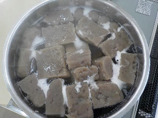 3年生の選択科目「里山文化」の実習でこんにゃくをつくりました。