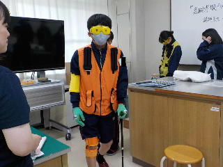 3年生の選択科目「生活と福祉」の実習で高齢者の疑似体験をしました。