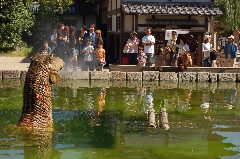 今回のバス旅行のメインは二つありました。一つは太秦の映画村 見学。もう一つは秋の嵐山散策でした。十一時には映画村に着き村内を見学した後、レストランで昼食をとりました。運のいいことにアトラクションが昼過ぎから行われていて、斬られ役?いや映画ラスト・サムライで有名な福本清三さんが寸劇を公開していました。堂々とした立ち回りに、本物はやはり違うなとみんな感嘆の声をあげていました。