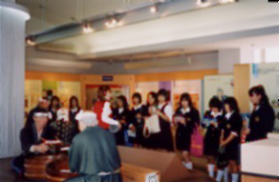 | 1年生の家政科は校外学習でそうめんの里に行きました。写真に写っている着物を着た男性は人形です。 | ![]() |