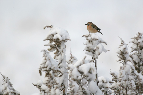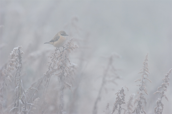 2月21日 霜が降り、辺りは真っ白。深い霧の中でもエサ捕りに精を出します。