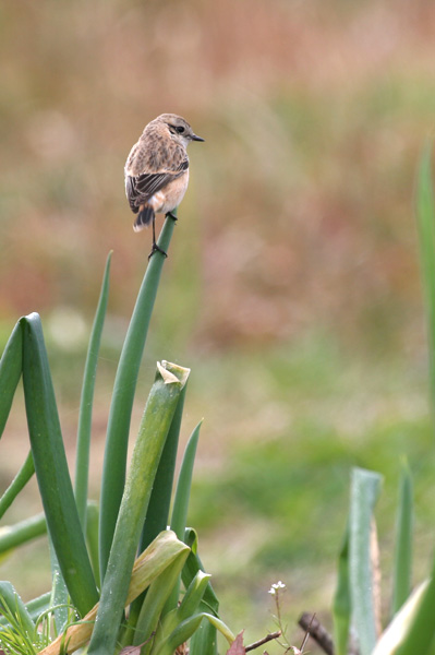 1月21日 今日は近くの畑に出かけます。ネギにとまって虫探し。
