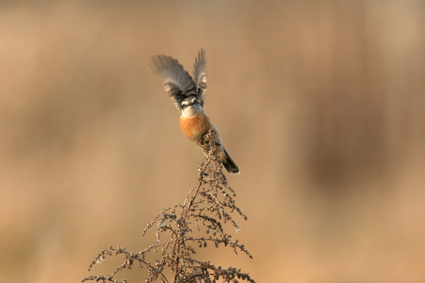 ノビタキの餌場は通学路にもなっています。ほぼ毎朝、車の中から観察している私を見て、小学生が不思議な顔をして行き過ぎます。付近にはこんな立て看板がいくつもあるので当然でしょう。ある朝、これではいけないと、子どもたちに少しノビタキの話をすると、次の日から「おはよう!おっちゃん、今日はノビタキおったか・・・?」と大きな声であいさつをしてくれるようになりました。その他にもご近所の方と「ノビタキ談義」をすることもあり、ノビタキを通して思わぬ交流の輪が広がりました。