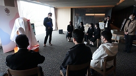 本日、亀の井ホテル淡路島(淡路市)にて、本校美術部が制作に携わったオブジェの除幕式が執り行われました。 このプロジェクトは、同ホテルより「エントランスを彩るアートを」とのご依頼をいただき始動したものです。部員たちは放課後や休日を利用し、ホテルのコンセプトに合わせた色彩やデザインを試行錯誤しながら、一つひとつ丁寧に色塗り作業を行いました。 式典に参加した生徒たちは、自分たちが命を吹き込んだ作品が披露される瞬間を目の当たりにし、達成感に満ちた表情を浮かべていました。このような貴重な機会をいただいた亀の井ホテルの皆様、関係者の皆様に心より感謝申し上げます。 お近くにお越しの際は、ぜひ生徒たちの力作をご覧ください。