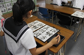 私たち書道部は毎週(火、木)に活動しております。様々な書道展に出品するために日々技術を高めるための努力をしており、放課後を楽しく有意義に過ごしています。また、校内文化祭では書道パフォーマンスを行い、毎年自分たちの思いを書で表現しています。私たちと一緒に書道を楽しみませんか?興味のある人は是非書道教室を覗いてみて下さい。皆さんの入部を楽しみにしています!