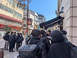 浅草演芸ホールに向かいました。浅草演芸ホールで、伝統芸能の面白さと奥深さに触れました。公演では、落語、漫才、紙切り芸があり、似顔絵をいただいた生徒もいました。芸が細かく話もとても面白く大変笑わせていただきました。