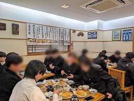朝日が昇り修学旅行2日目が始まりました。食べ盛りの生徒達は朝食に釘付けです。