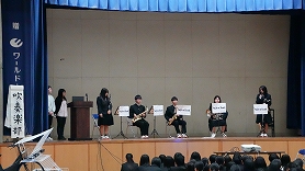 その後の、熱気あふれるクラブ紹介が行われ、各クラブの紹介動画をスタートに、運動部による迫力満点のパフォーマンス、文化部による繊細かつクリエイティブな作品・演奏紹介 思わず笑いが起きるようなユニークな紹介など、各部が1年生を勧誘しようと全力のプレゼンテーションを繰り広げました。
