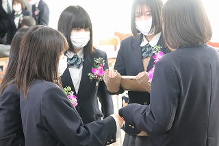 | 令和3年2月26日(金)、第43回卒業式が挙行されました。みのりと食科35名、総合畜産科28名、計63名が学び舎を巣立っていきました。3年間の思い出を胸に、新しい第一歩を力強く踏み出していってください。ご卒業おめでとうございます。 | ||