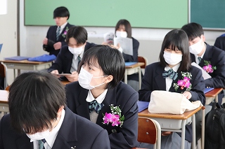 | 令和3年4月8日(木)、令和3年度が始まりました。始業式に先立ち、今年度新たに着任された5名の先生方が紹介されました。新年度を新たな気持ちで登校した生徒たちは、自身の掲げる目標に向けて元気にスタートしてください。本年度もどうぞよろしくお願いします。 | ||