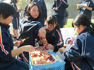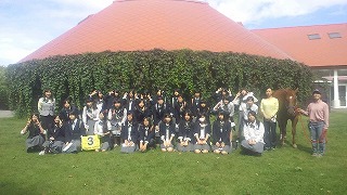 | 平成27年9月10日(木)、天候は曇、気温19℃。時折青空も覗き、今のところ雨の心配はありません。実習修学旅行のメインイベントであるファームステイが閉所式をもって終わろうとしています。最初は不安と緊張でいっぱいでしたが、農家の方々の優しい言葉に、温かい笑顔に、私たちの心はいっぺんに吸い寄せられていきました。気づけば、兵庫県のこと、学校の様子や自分たちのことまで、まるで友達に話し掛けているようで、言葉がどんどん溢れ出てきます。夕食には、ジンギスカン鍋や焼き肉をご馳走になり、夜遅くまで楽しい時間を過ごすことが出来ました。朝を迎え、お別れの時間が近づくにつれて、寂しい気持ちになりました。私たちを温かく迎えてくださった農家の方々との思い出を、ずっと大切にしていきます。本当にお世話になり、ありがとうございました。 | ||