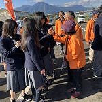 | 10時15分、ファームステイ先の方々に出迎えられて開所式が行われました。気温19℃、少し肌寒い中ではありますが、受け入れ農家の方々から温かい歓迎を受け、緊張感も少しずつ解けていきました。代表であいさつした畜産科の永井君は「北海道の農業を全部吸収して帰ります」と高らかに宣言。大きな拍手に包まれ、和やかな雰囲気の中、それぞれのファームステイ先へと向かいました。 | ||