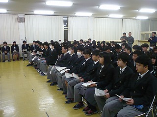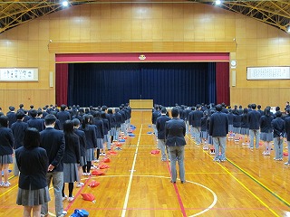 | 令和元年12月24日(火)、2学期 終業式が行われました。生徒の皆さん、令和元年はどのような年になりましたか。今年1年の取り組みを振り返る中で、成長できたと感じるところは更に伸ばし、努力を重ねる必要がある部分は、新たな年の課題として自己研鑽に励んでください。3学期は、令和2年1月8日(水)始業式をもって始まります。 | ||