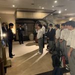 | 北広島クラッセホテルに到着 | 綺麗な夕焼け あしたも晴れるかな | 入館式では、熱烈歓迎 |