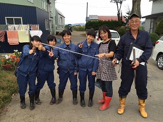 | 但馬で視る農業とは異なり、北海道の広大な自然の中での農業は、私たちを圧倒するものでした。とにかく全てにおいて規模が大きく、「目の前に見える土地が全部我が家の畑です」と伺った時には、言葉も出ませんでした。ファームステイ先の方々はとても優しく、私たちに色々なお話をしてくださり、農業実習はもちろん、北海道ならではの貴重な体験も味わうことが出来ました。夕食は、ファームステイ先の方々にご近所の方も加わり、親戚の方も集まっての盛大なジンギスカン鍋が頂けるそうで今からめっちゃ楽しみです!今夜は思いっきり食べるぞ! | ||