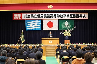 | 令和2年2月28日(金)、第42回卒業式が挙行されました。農業科30名、畜産科19名、生活科24名、計73名が学び舎を巣立ちます。3年間の思い出を胸に、それぞれが進む新しい道へ、力いっぱい踏み出して行ってください。ご卒業おめでとうございます。 | ||