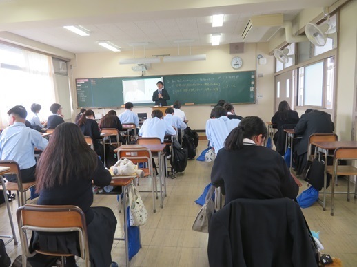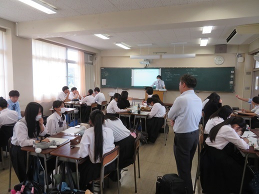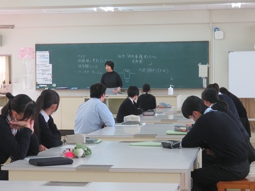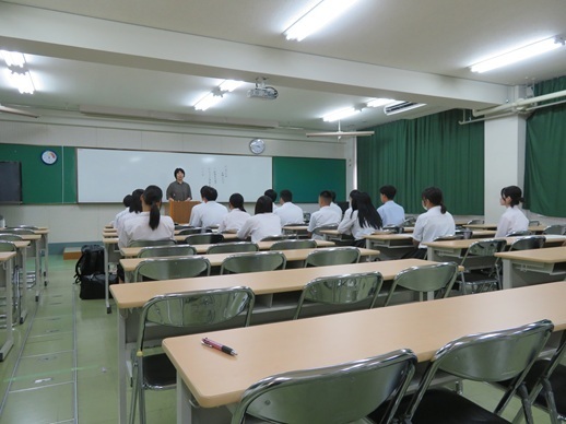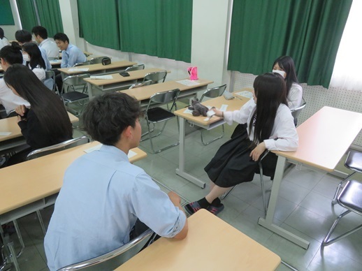 放課後に、希望者を対象に看護医療福祉体験授業が行われました。大学や専門学校の方が来られて、講義に加えて簡単な体験もさせていただき、生徒は熱心に聴いていました。