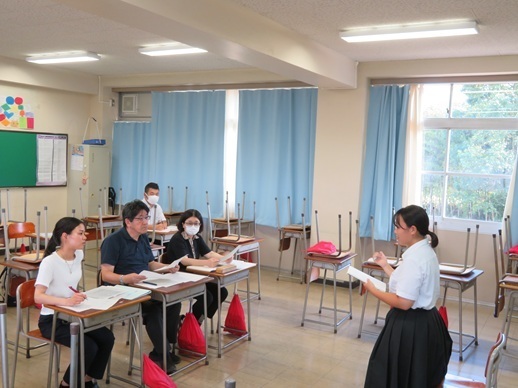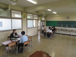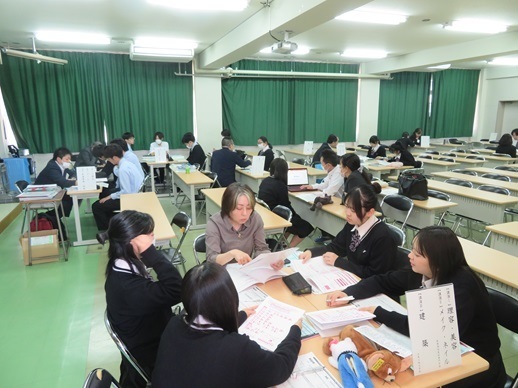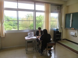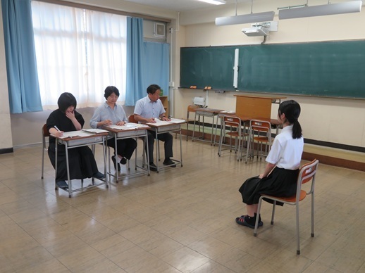放課後、就職希望者に対して面接練習が行われました。生徒1人に対して3人の先生が面接官役になり、志望動機や自己