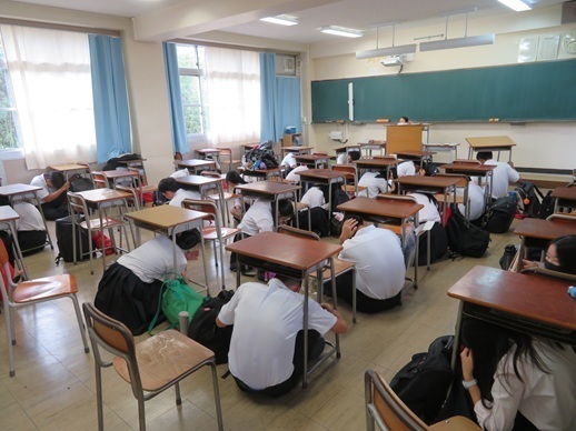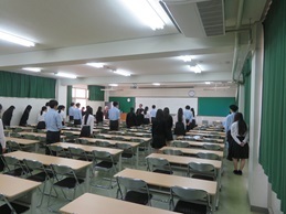 夏休みも終わり、2学期が始まりました。今日は防災の日でもあり、朝のショートホームルームでシェイクアウト訓練が実施されました。その後、大掃除をして始業式が行われました。