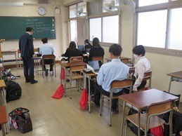 就職試験受験者壮行会が行われました。教頭先生からは、「進路実現に向け不安や緊張することは当然のこと、自分の興味・関心についての話し合いの場であるというふうに受け止め面接に挑んでください」とのお話をしていただきました。教頭先生の自らの経験を交えた激励のお言葉は心強いものでした。その後、キャリア支援部長の先生から当日の諸注意について、就職担当の先生からはこれからの高校生活の過ごし方などを話していただきました。いざ、