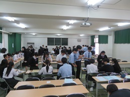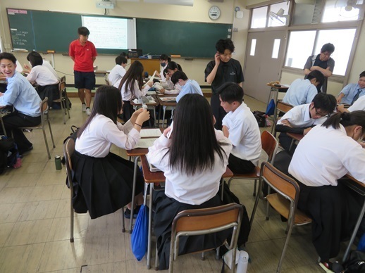 本日、6時間目は高校生心のサポートシステム研究授業が行われました。つらい体験が続くと体と同じで心も病気になり、周りが見えなくなってしまいます。友達がそのような状態にあるときにどのように相談にのり、周りの大人につなげたらよいのか、相談のロールプレイングをグループごとで行うなどして考える時間となりました。