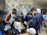播磨福崎高校のオープン・ハイスクールがありました。全体会の初めに行われた歓迎演奏では、夢前高校地域アクティブ類型の生徒がゆめさき明神太鼓で福崎・播磨福崎高校のギターマンドリン部とコラボ演奏しました。その後の校長先生の話では、両校の伝統が融合したすばらしい演奏だと評されていました。また、体験授業でも夢前高校の生徒がサポート役として関わりました。