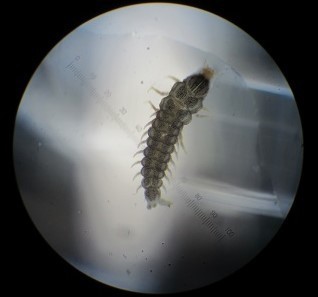 ホタル水槽の掃除をしていた時に6~8 mmくらいに成長したホタルの幼虫が確認できました。このまま順調に成長することを祈ります。