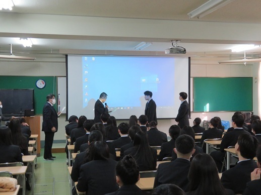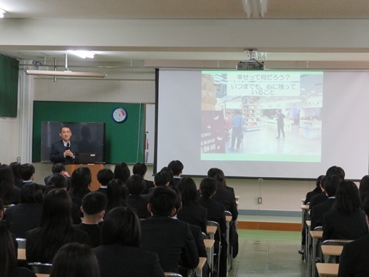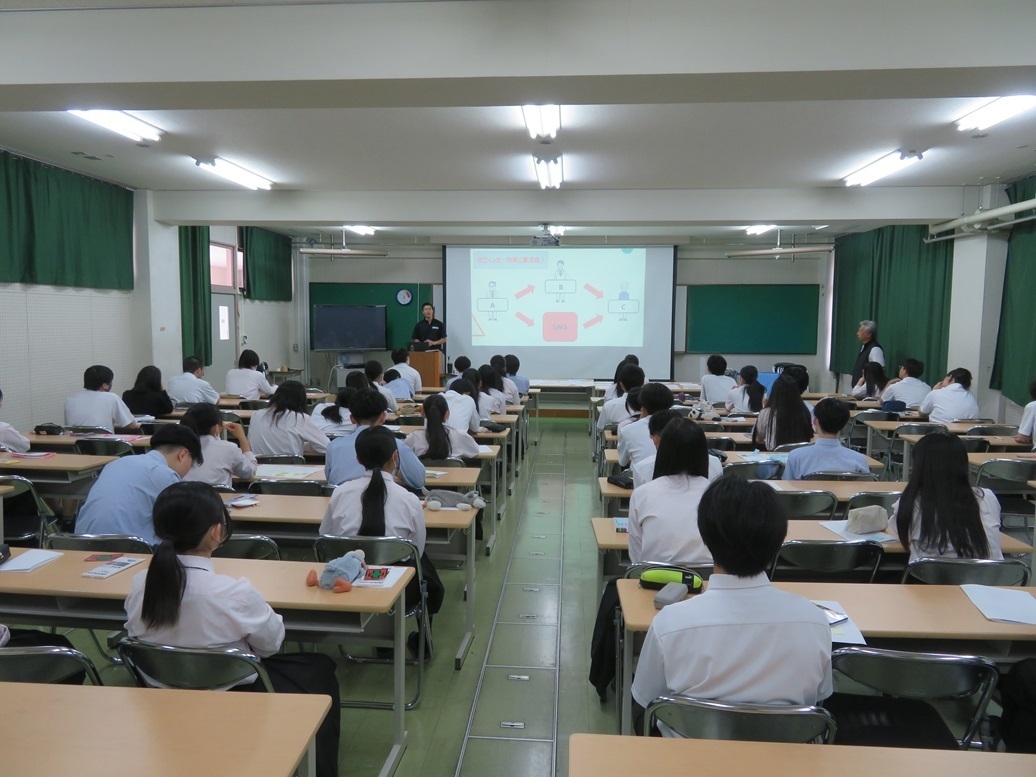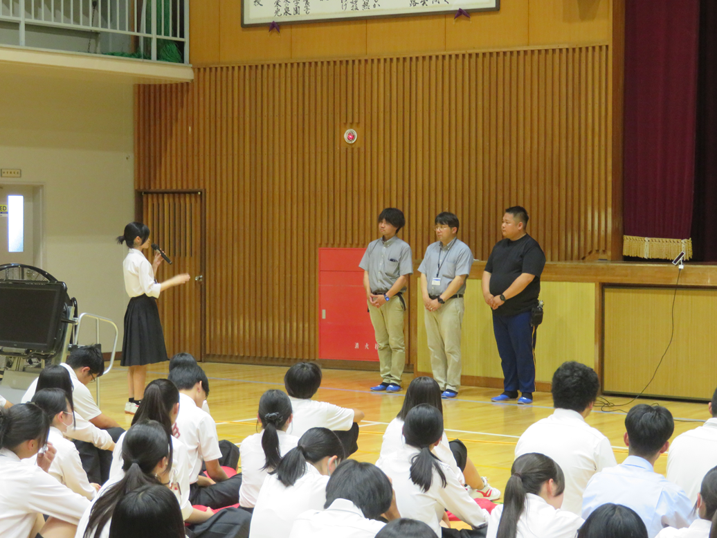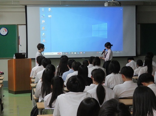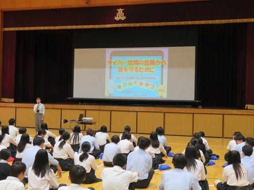 SNSなどのネット環境が様々な犯罪に利用されていて、情報収集の力や疑う力を持つことが大切であることを教えていただきました。最後に、生徒会長から「インターネットを使う際には今日学んだ情報モラルに気を付けようと思います。ありがとうございました」と謝辞が述べられました。