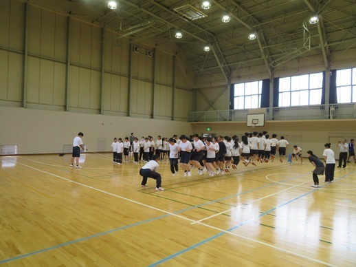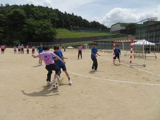 35℃を超える猛暑でしたが、1時間目から4時間目まで生徒会が主催の球技大会が行われました。開会式で準備運動をした後にバスケットボールとサッカーに分かれ、熱さを吹き飛ばす白熱した試合が繰り広げられました。