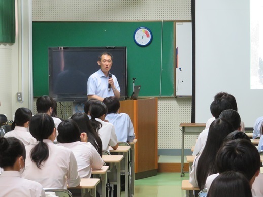 本日4時間目は、姫路赤十字病院がん診療連係課看護師長緩和ケア認定看護師の井上豊子様に来ていただき、がん教育講演会が行われました。がんは日本人の2人に1人がかかる身近な病気なので、がんについてきちんと知り、どのように向き合っていくべきかをよく考えておくことが大切だということを教えていただきました。
