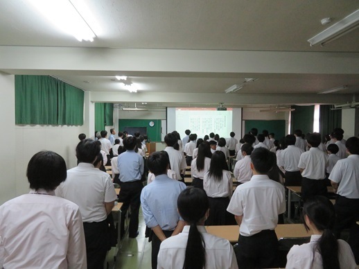 終業式後は、球技大会の結果発表があり、最後に生徒支援部長から夏休み明けも元気な姿を見せてくださいとの話がありました。
