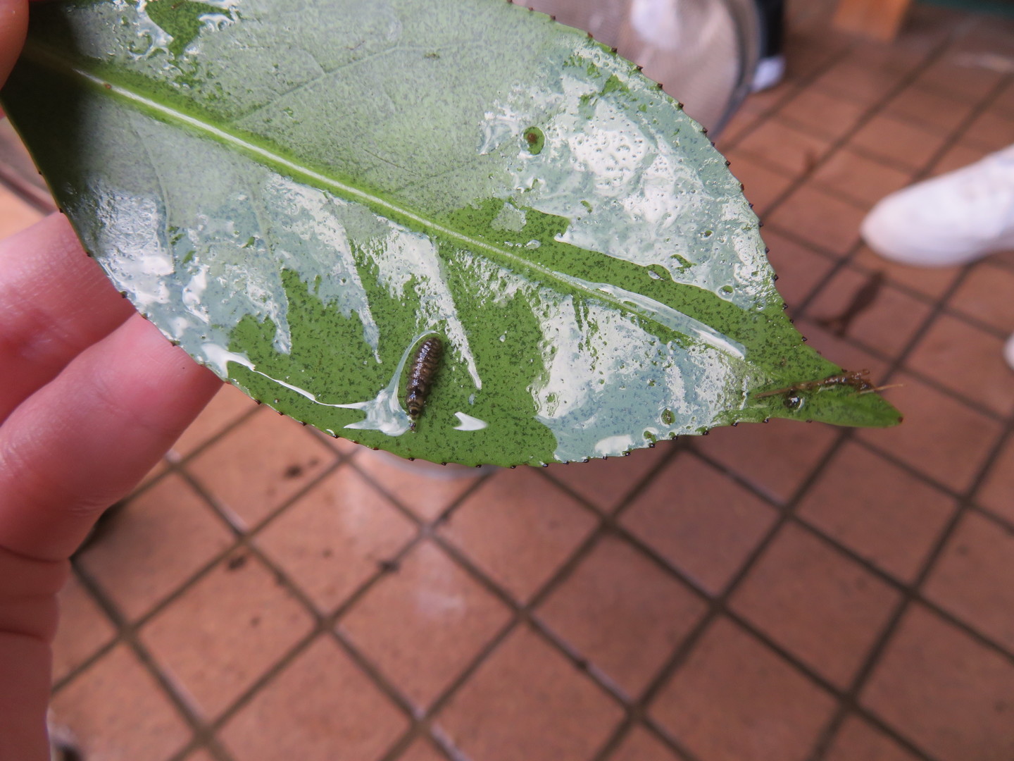 1cmほどのホタルの幼虫を多く見つけることができました。掃除をした後は、ホタル幼虫の餌になるカワニナの餌となる草や木の葉を学校周辺の林に取りに行き、餌やりを行いました。このままホタルが順調に成長してほしいです。