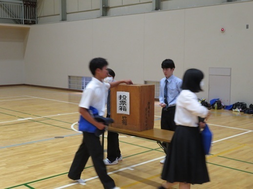 令和7年度生徒会役員選挙が行われました。全校生徒に向けて、立候補者はステージ上から夢前高校への思いや立候補した理由や抱負などを熱く演説しました。演説後、全校生徒が信任投票で投票を行いました。新役員は卒業まで継続して取り組まなければなりません。選ばれた場合には最後まで責任を果たして頑張っていきましょう。