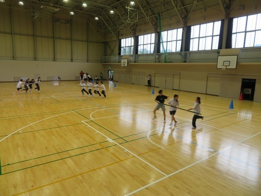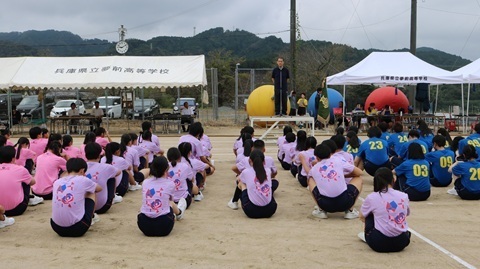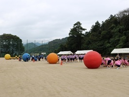 1日予行を行う予定でしたが、雨天のため5,6時間目に行われ、本番の流れを確認しました。大玉運びや台風の目、大繩などクラス全員が参加する種目の練習をして、明日の本番に備えました。