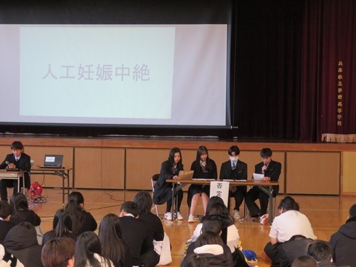 2年生が、2組目と3組目は「人工妊娠中絶」、「死刑制度」というテーマについて3年生が討論しました。