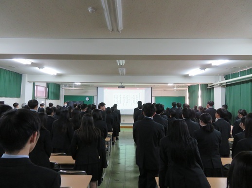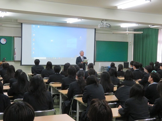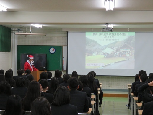 終業式後の生徒支援部長講話は冬休みの過ごし方と服装に関するお話で、夢前高校生としての規律を守ることがその後の進路にも影響してくることを話されました。